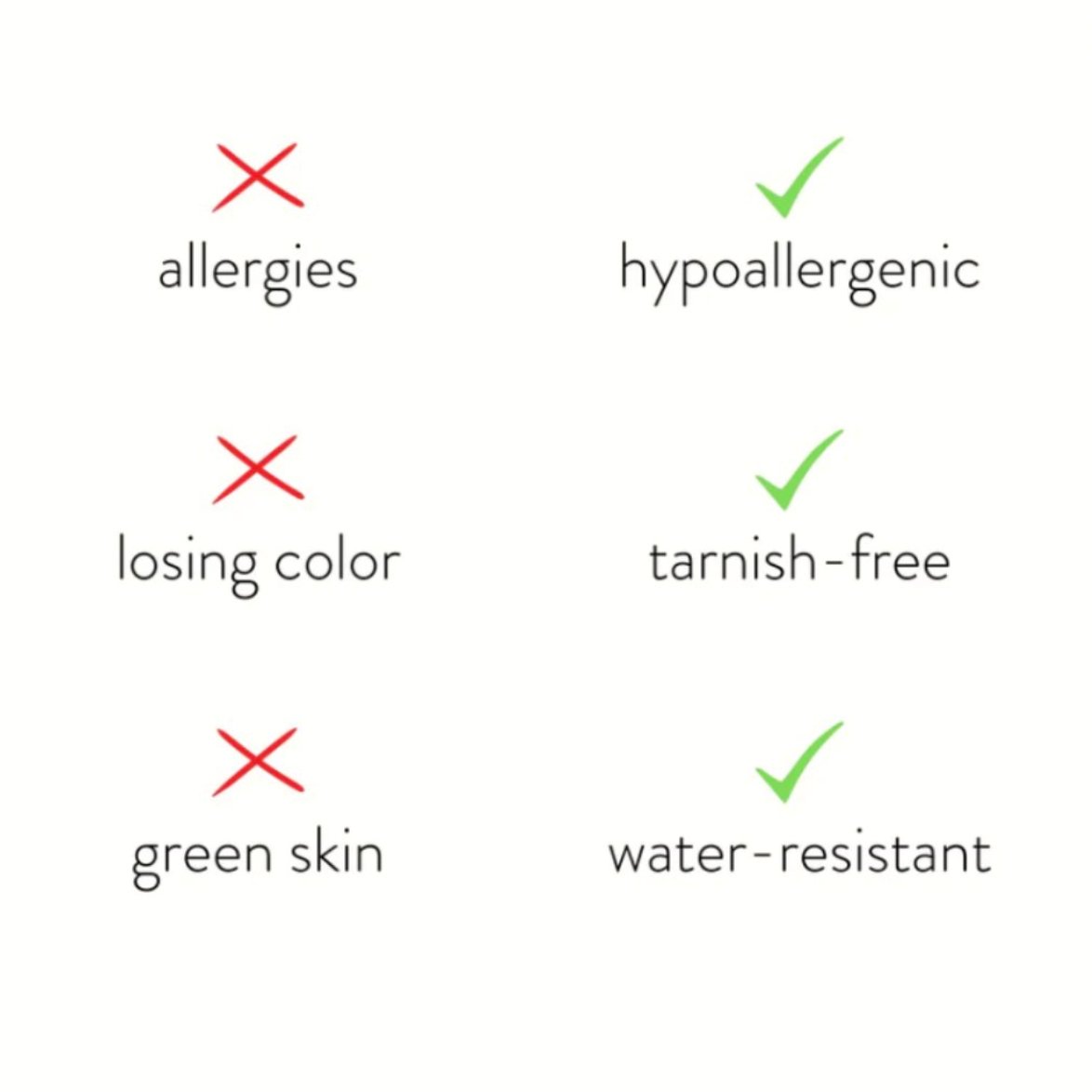 Made with waterproof stainless steel, you never need to worry about fading or tarnishing jewelry ever again!