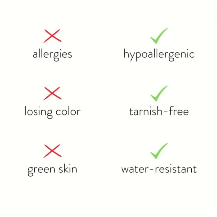 All of our jewellery is made fromstrong stainless steeland coated with18K real goldusing aPVD (Physical Vapor Deposition)process, making it 100% waterproof and highly durable.