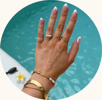 All of our jewellery is made fromstrong stainless steeland coated with18K real goldusing aPVD (Physical Vapor Deposition)process, making it 100% waterproof and highly durable.