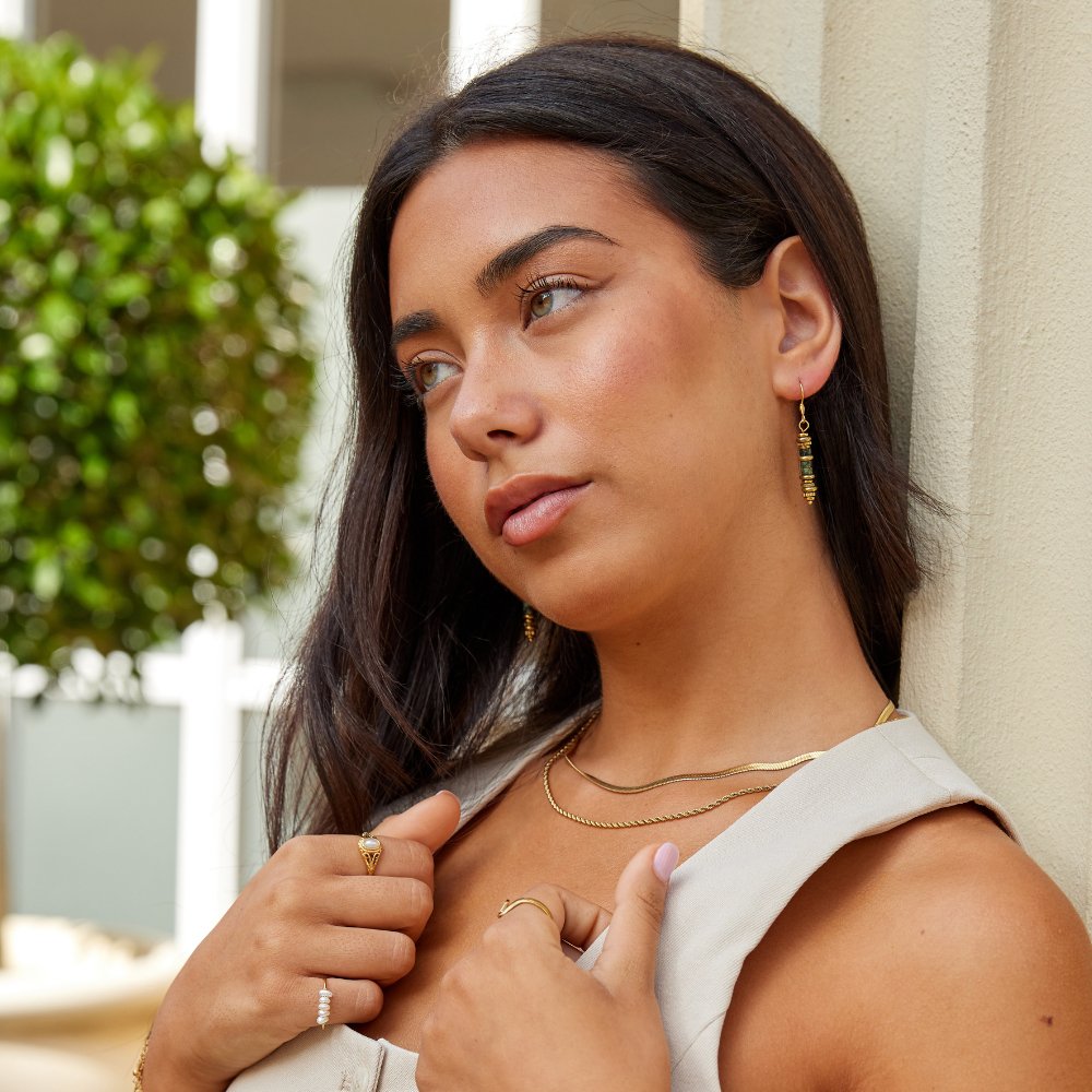 All of our jewellery is made fromstrong stainless steeland coated with18K real goldusing aPVD (Physical Vapor Deposition)process, making it 100% waterproof and highly durable.